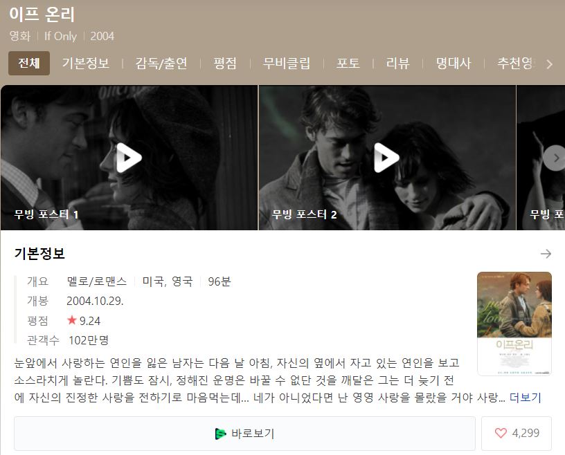 연말에 어울리는 지는 모르겠지만 영화에서 워낙 유명한 노래 이프온리 ost -Love Will Show You Everthing 이 노래로 떠올리는 영화기도 하죠. 특히 솔로분들은 이 영화를 보면 연애세포가 깨어나지 않을까 싶네요/^^/